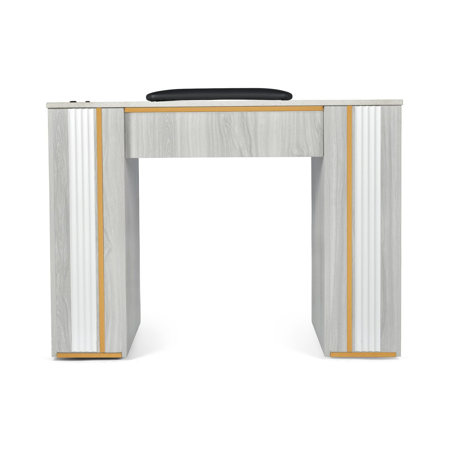 Upgrade your salon workspace with this sleek, modern nail table designed to enhance both technician efficiency and client comfort. With elegant gold accents, smart storage solutions, and built-in mobility, this table delivers the perfect balance of luxury and practicality for professional nail stations.
