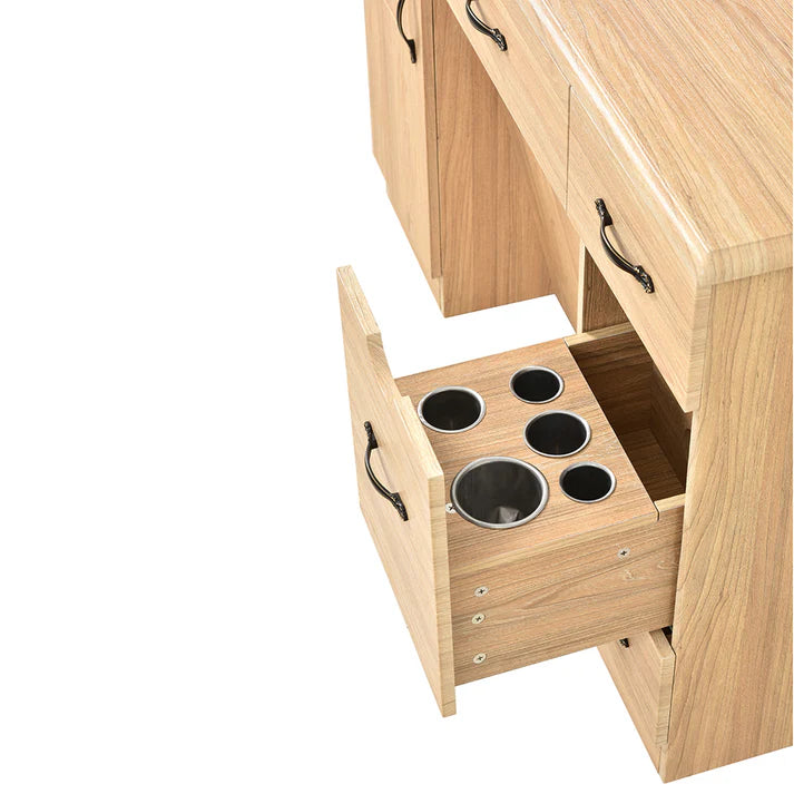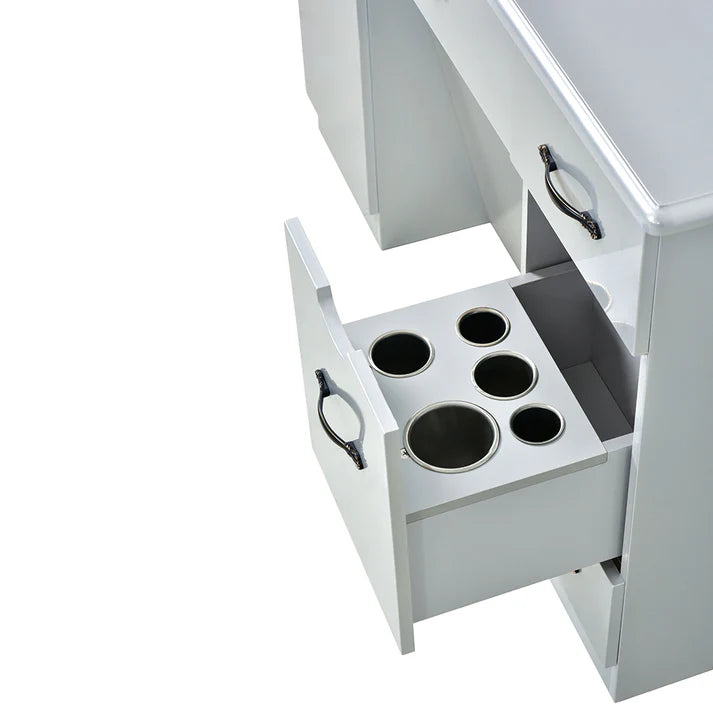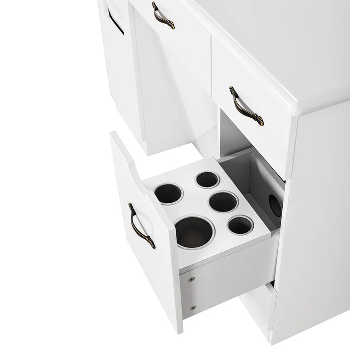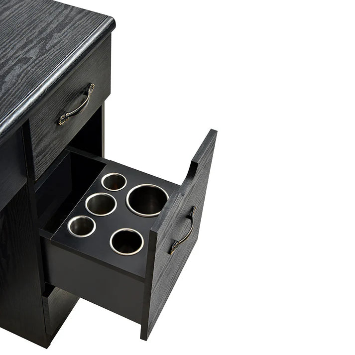 • Smart Barber Cabinet - Compartmentalized storage along with Hot Tool slots.