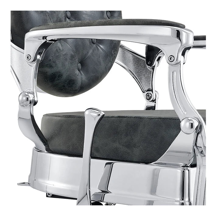 The Julius Heavy Duty Barber Chair is meticulously crafted for the professional who demands reliability. This reclining Julius Barber Chair features a robust internal build, including a super-heavy-duty hydraulic pump that easily handles a weight capacity of over 580 lbs. The vintage-inspired design, complete with a high-quality metal frame and stunning chrome finish, is wrapped in superior faux leather for comfort and style. Elevate your operation by choosing the ultimate, dependable master barber's throne.