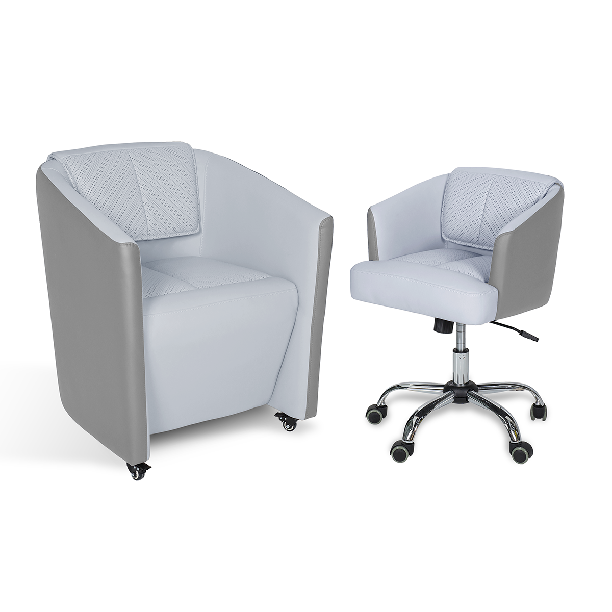 Elevate your salon experience with the Barron Customer & Technician Chair Collection. Available in a stylish two-tone palette of chocolate and gray, these chairs offer unmatched comfort for both you and your clients.