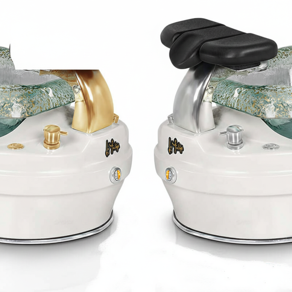 Step into a world of luxury and innovation with the La Tulip 2 Pedicure Spa by Gulfstream. Designed to impress, this stunning spa chair features a sleek acrylic base illuminated by a soothing LED glow, accented with elegant gold edging for a touch of sophistication.