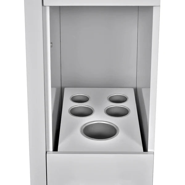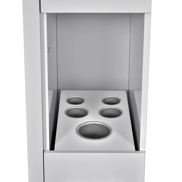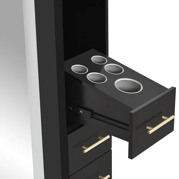 The DIR Single Side Salon Styling Station Adonis delivers elegance and full functionality in one glossy frame. Equipped with a full complement of cabinetry and conveniences, this unit is built to thrive in the busiest salon environments. Experience sophisticated design that keeps your workspace organized and efficient.