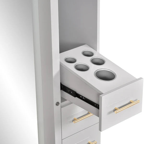 • Multi-storage area ideal for space-conscious salons