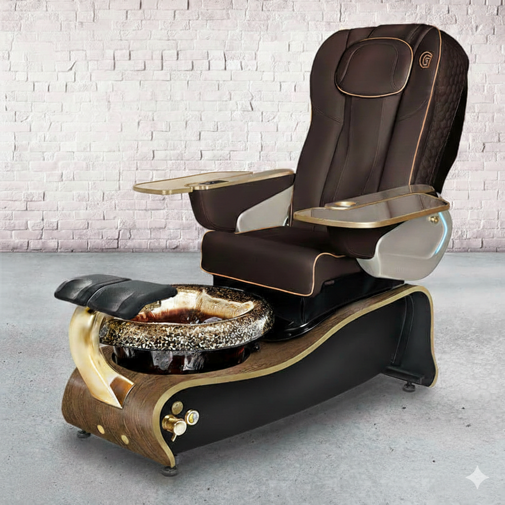 Feel Like a Queen in Gulfstream New La Maravilla spa pedicure chair, where Sophistication Meets Elegance. La Maravilla pedicure spa chair offers Gulfstream’s signature hand crafted glass, curved wooden base, high quality massage chair, & IDJET Technology. La Maravilla pedicure chair comes with a state-of-the-art shiatsu roller back massage system. The roller back system works on applying pressure to all the right spots as well as providing several different functions: compression, kneading, percussion and rolling. All of these functions can be controlled by a hand-held remote which allows your client to customize their experience.The IDJet Whirlpool System is one of the most powerful on the market. This system is easy to remove and clean with its magnetic locking system. La Maravilla pedicure spa offers Gulfstream’s signature hand-crafted glass bowl with a curved wooden base, high-quality massage chair and IDJet Technology.